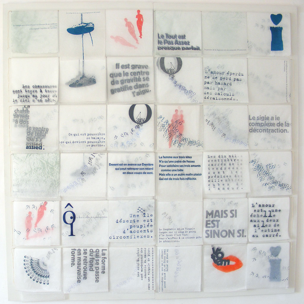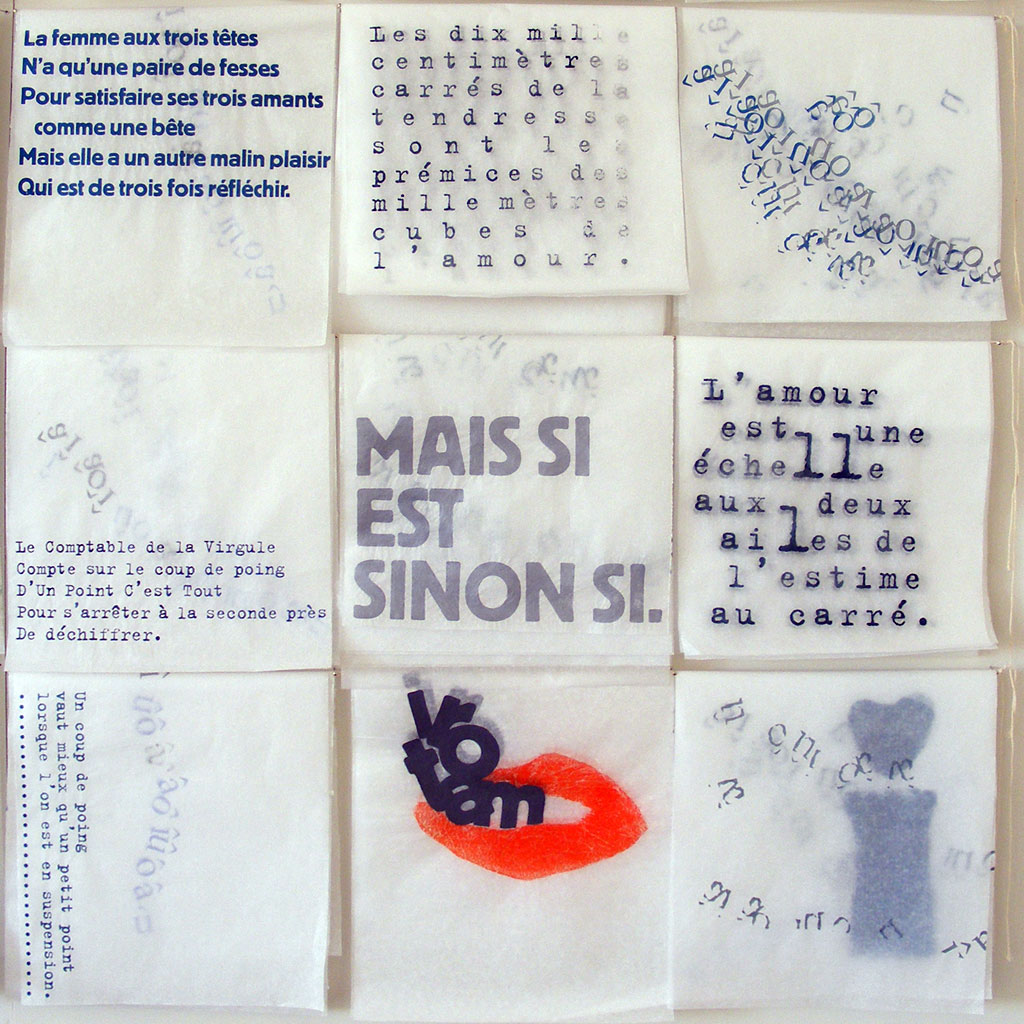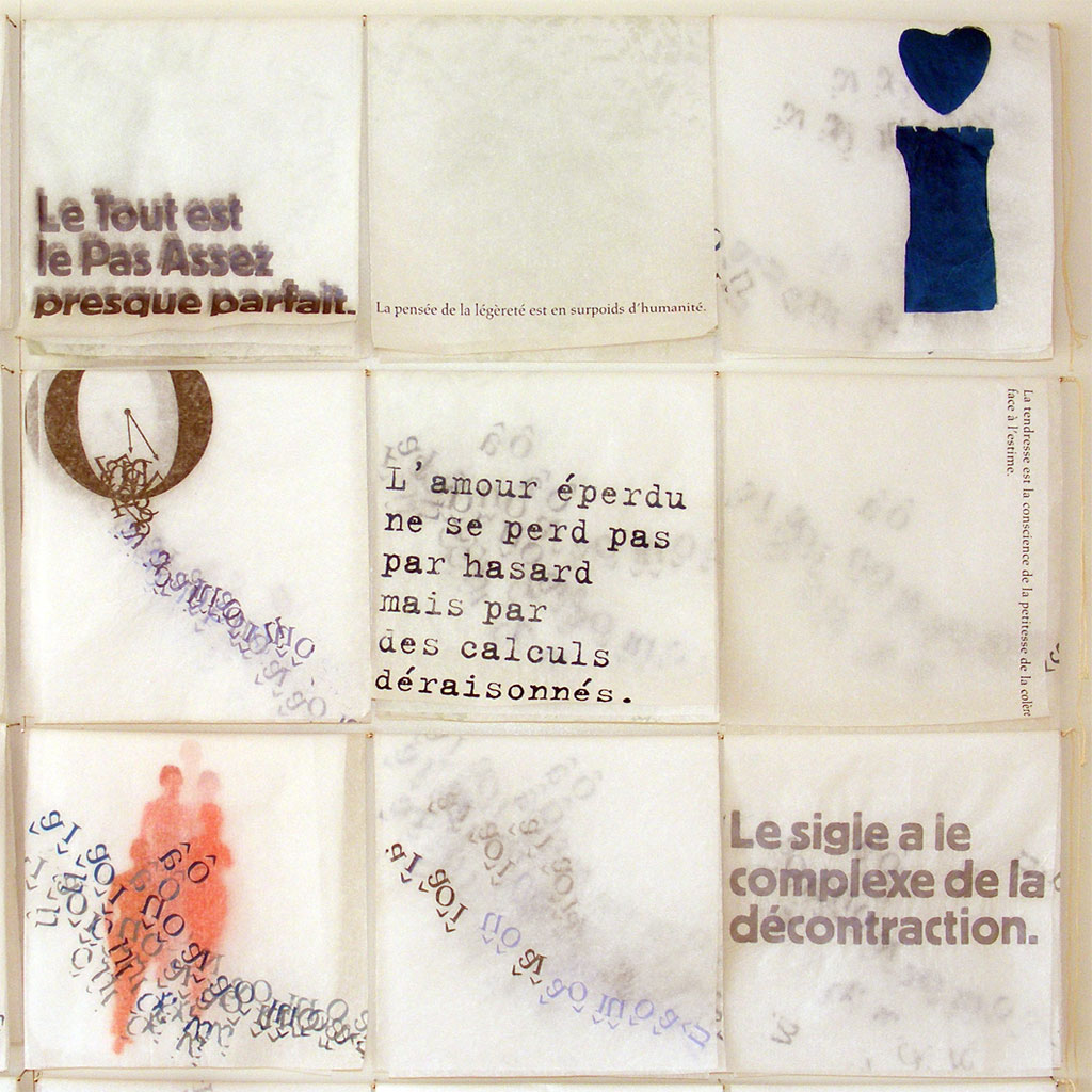 Une triple symétrie (spontanée, logique, poétique) permet un déplacement du centre de gravité en toute liberté dans la maxime ou la pensée poétique (rationalité et images) ainsi que dans la sérigraphie et enfin dans l’ensemble de l’œuvre plastique.